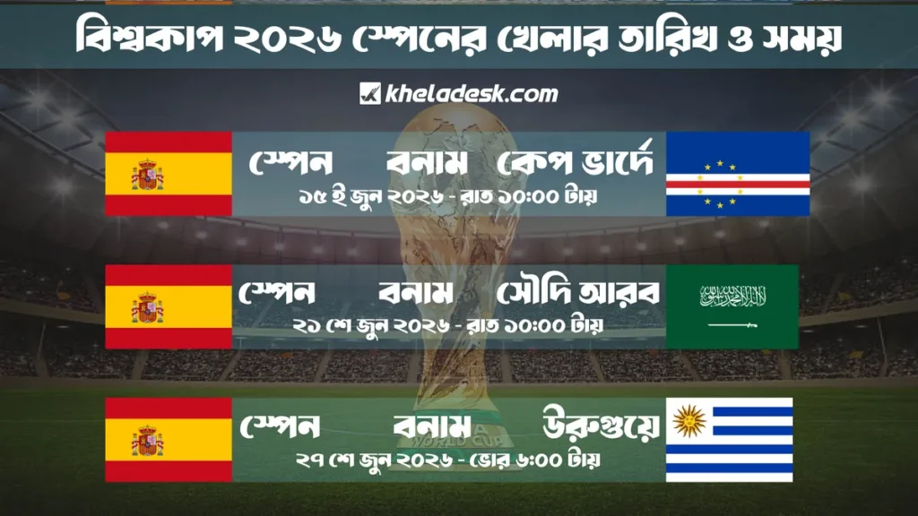 স্পেনের খেলার তারিখ ও সময় ফিফা বিশ্বকাপ ২০২৬